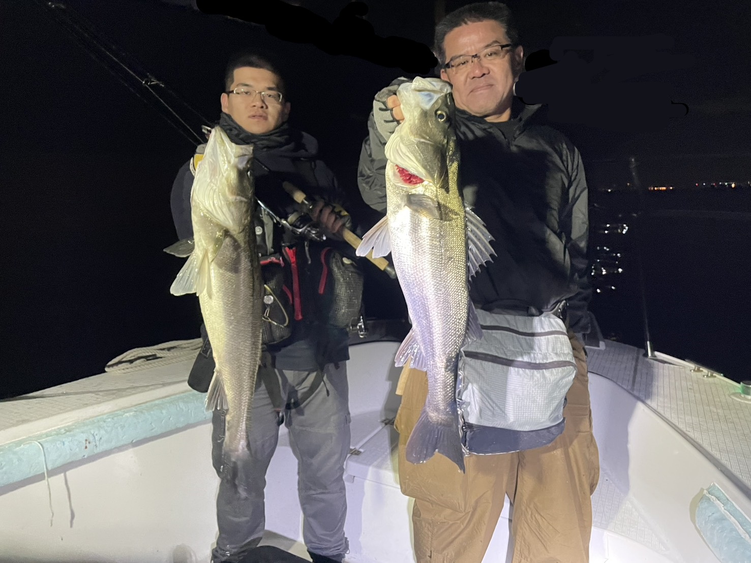 10月26日5時 2人 シーバス 50〜65センチ 15ヒット位 名古屋からお越しのカップルがご乗船。
